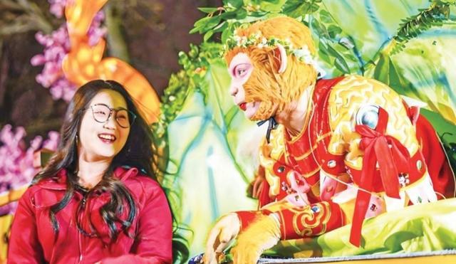 话痨讨喜的“雪饼猴”、帅气迷人的“唐僧”……夜幕降临,这些火爆出圈的NPC出现在园区舞台之上,与游客零距离互动。“爆笑五行山”“情梦女儿国”“你来做玉帝”等演艺节目轮番上演,让人应接不暇。
